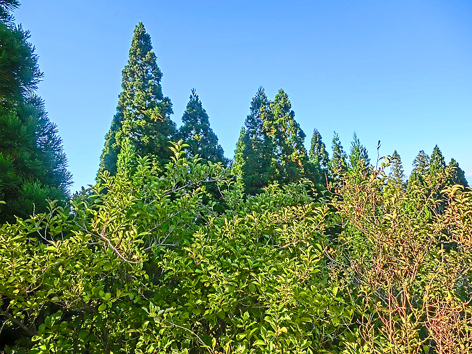 木々を照らす夕日のまぶしさに、目を細めます・・・