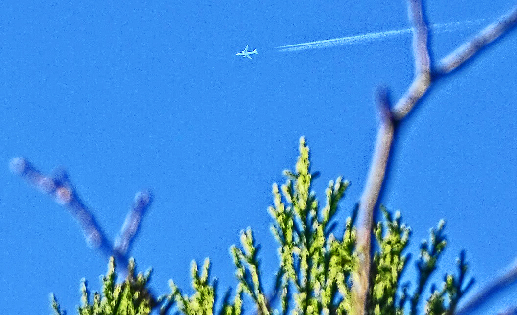 ふと青空を見上げると、なんと飛行機が、これほど近くに!! (゚o゚;)