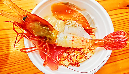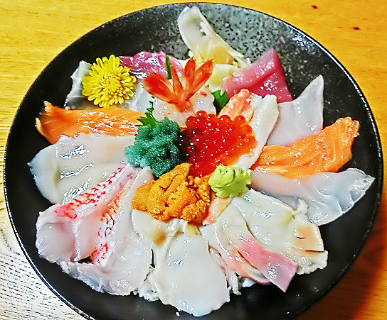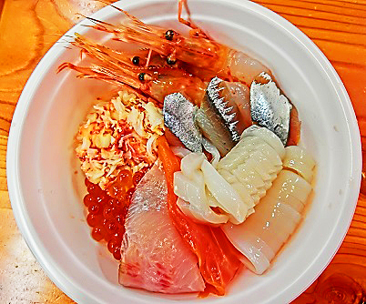 (ちなみに、十数種類のネタが乗っている、2200円の「海鮮丼」でした)