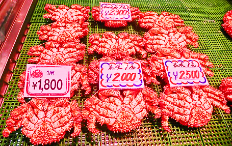 この市場では、何と言っても、道東でしか捕れない、名物の「花咲ガニ」が、目立っていました。