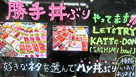 すると、噂に聞く、あの「勝手丼」(かってどん)のお店が、多数立ち並んでいます。