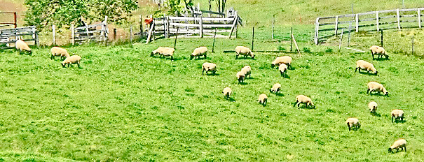 展望台から見下ろすと、羊たちや牛たちが、きわめて能天気に暮らしています。