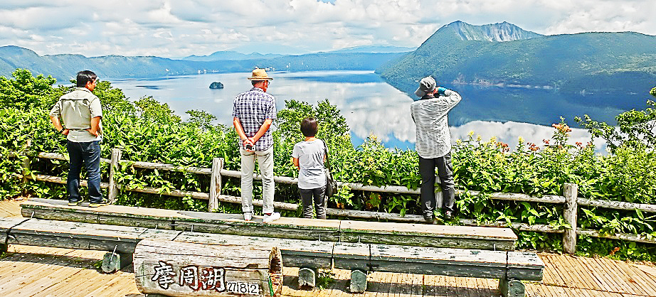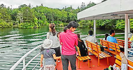 静かな絶景の中で、夏休みの親子たちが上げる歓声が、湖面に響きます。