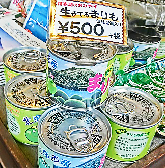 まりもの瓶詰めや、缶詰めを、たくさん売っています。