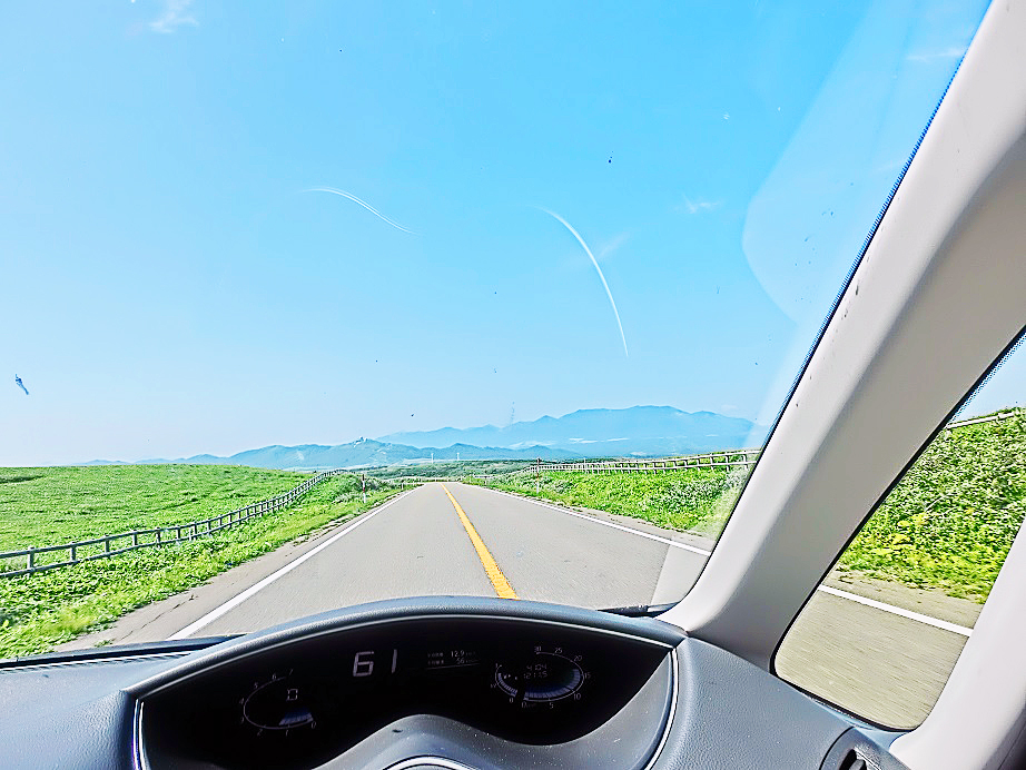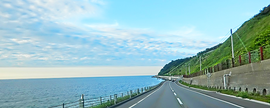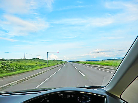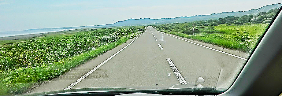網走から海岸沿いの一直線の道を、快適なドライヴ。