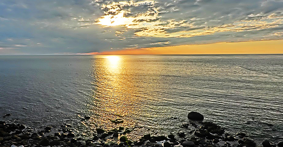 オホーツク海に沈みゆく、夕陽の素晴らしさに感嘆し、車を停めて撮影。