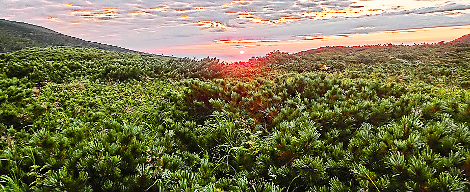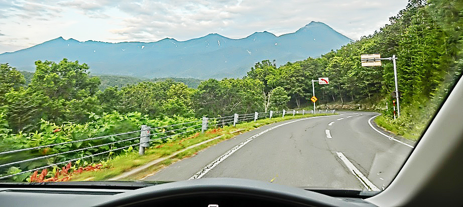 「ウトロ」の街で右折して山道を登ると、ヒグマが多い「知床連山」が見えてきました。