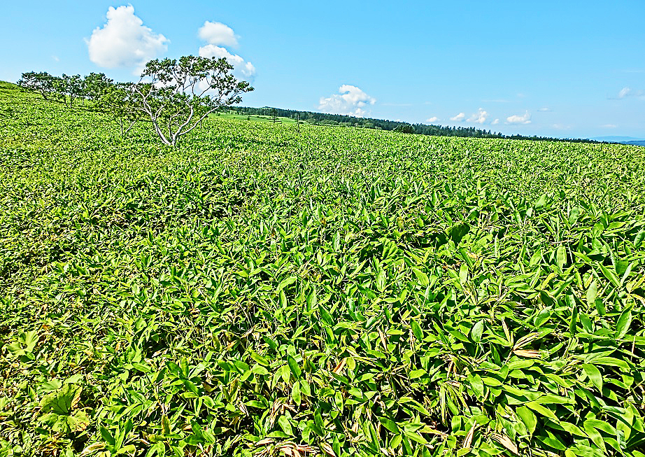 屈斜路湖が背後になるよう、美幌峠で振り向くと、こちらにも素晴らしい笹原が・・・
