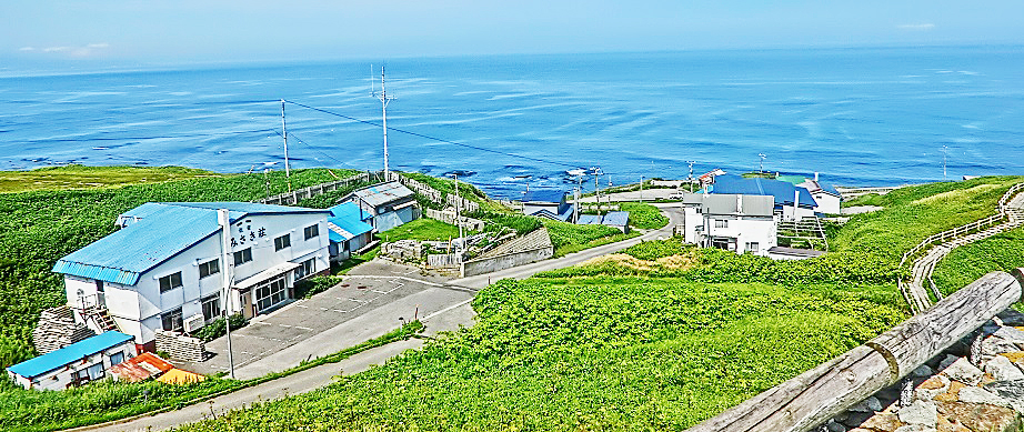 民宿「みさき荘」や、昆布(こんぶ)の加工場などを、左手に見下ろしながら歩いてゆくと・・・