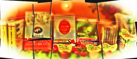 《 ヒント:3 》お店では、この写真(わざとぼかしてあります)のように、僕の本(すべて直筆サイン入り)や講演CD&コンサートCDなどを、オシャレな飾りつけで販売しております。