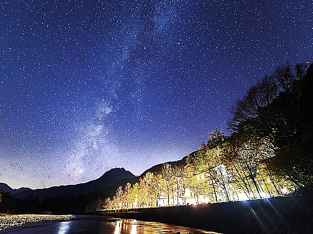 ※ ホテルの目の前、「梓川」(あずさがわ)から見上げれば、大宇宙に広がる満天の星が!!