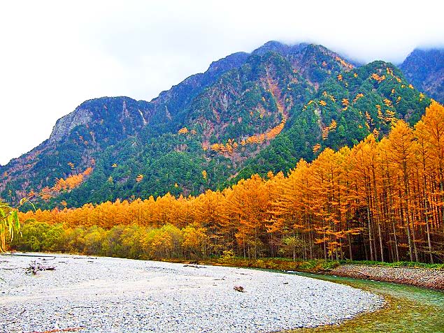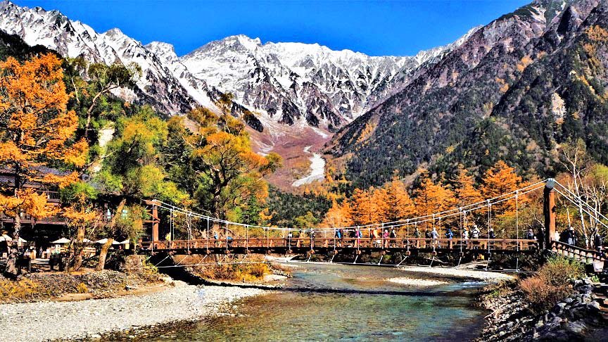 ツアー日程は、「どうせ決行するならば」と、あえて、上高地(河童橋周辺地域)の紅葉の最盛期(10月20日前後)を選択いたしました。