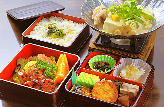 ※ 献立は、「三段重ね弁当 + 鍋物」となります。(写真は一例)