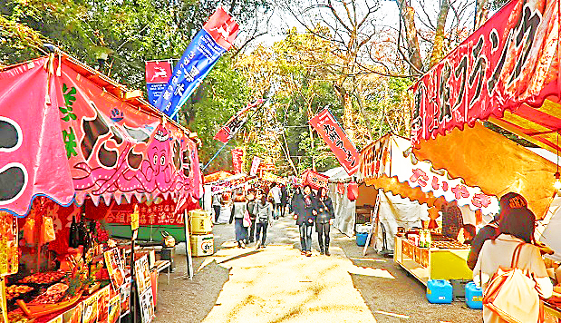 本殿に向かう参道には、さまざまなお店が開店中。