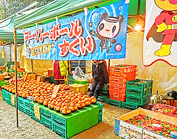 みかん、えび芋など、一般の「縁日」では見られないお店も・・・