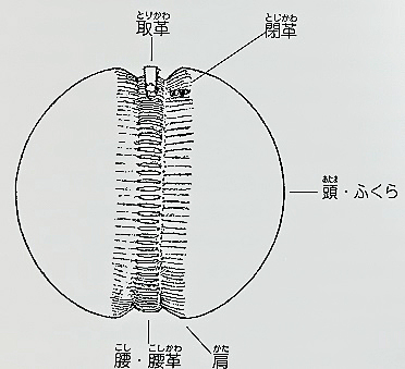 鞠は2つの半円を繋(つな)いだ繭形(まゆがた)で、