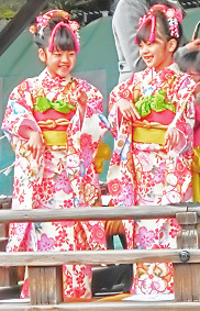 その一方、舞台の上で楽しそうに踊る、着物の少女たちも。
