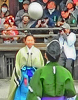 ついに、鞠が高く蹴り上げられて、「蹴鞠」の開始です!!