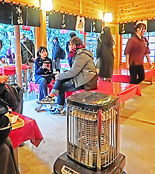 蹴鞠鑑賞で冷え切った体を、店内のストーブが、優しく温めてくれました。