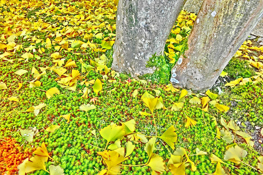 山門を入ってすぐ右手に、美しすぎる、「散りイチョウ」が!!
