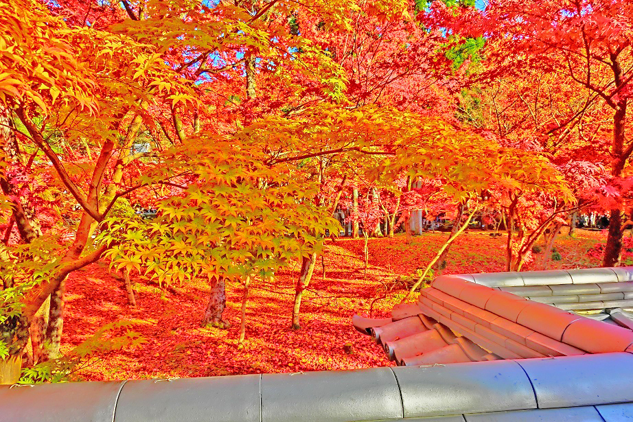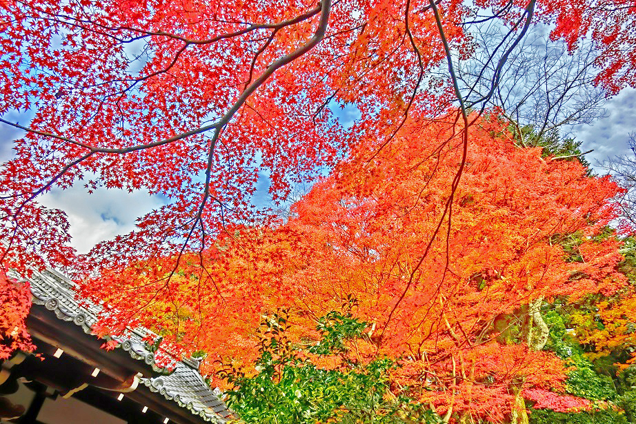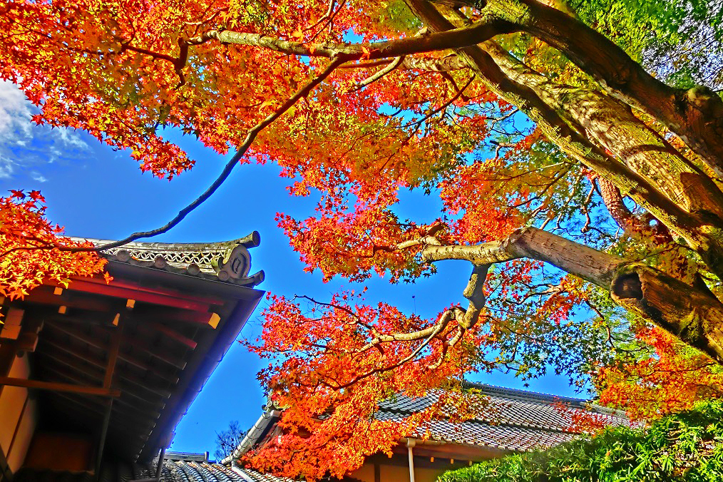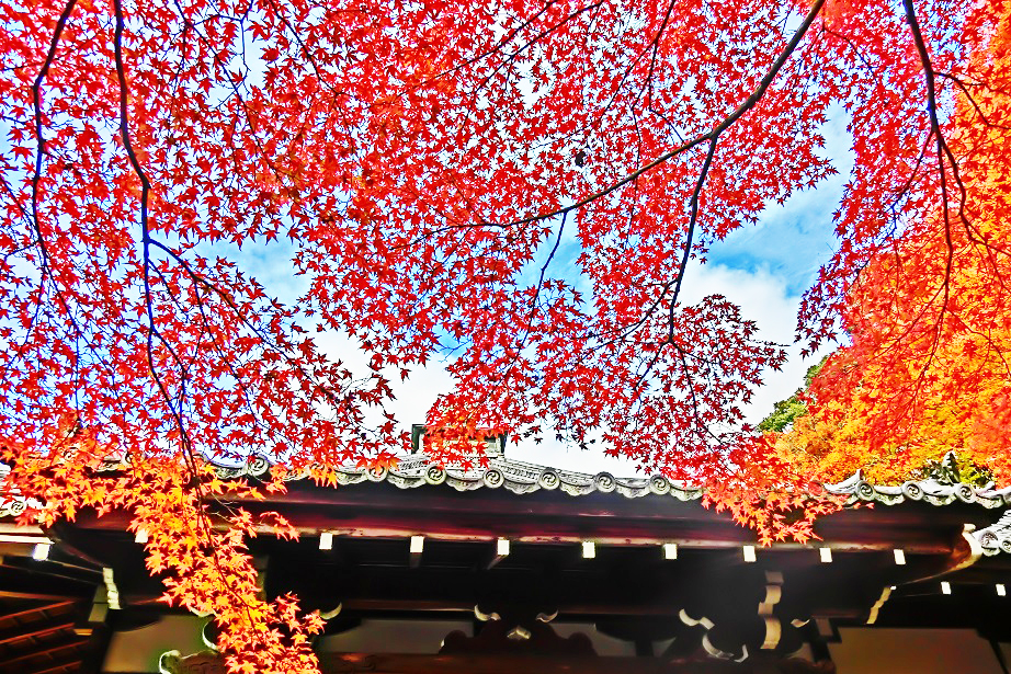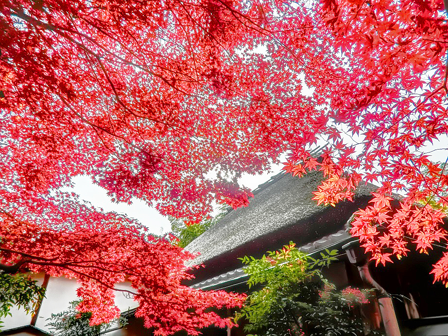 お寺の屋根瓦と、深紅の紅葉は、抜群の相性なんですよ、これが・・・