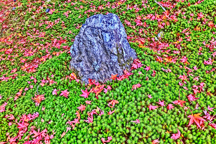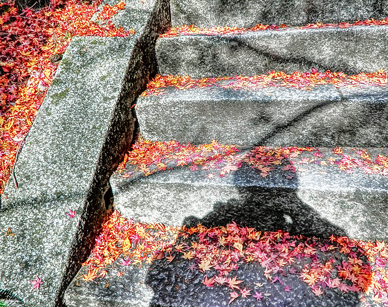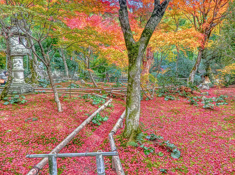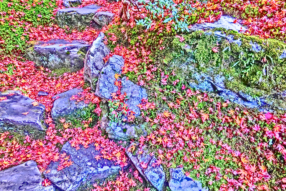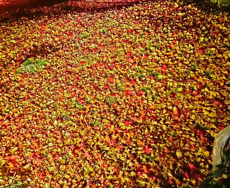 ここでも、またもや、「散りモミジ」の素晴らしさに、息を飲みます・・・