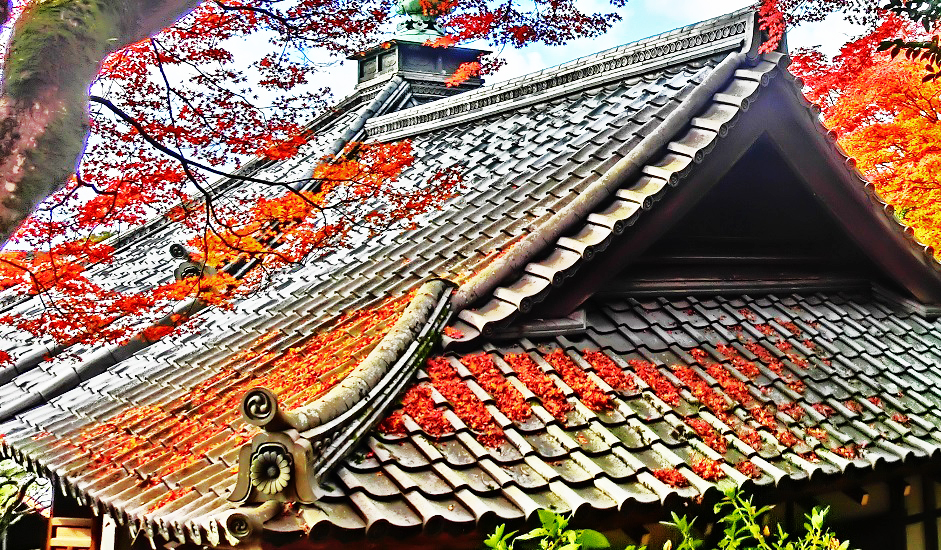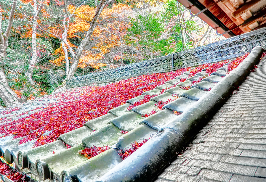 このように、屋根の瓦(かわら)の上に降り積もった葉っぱたちも、