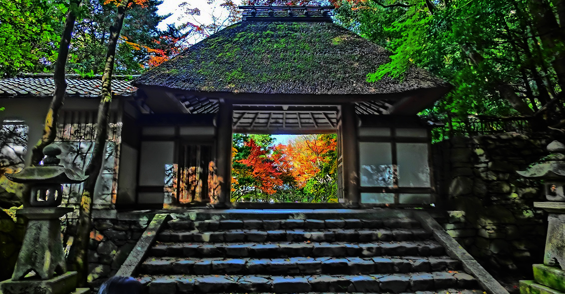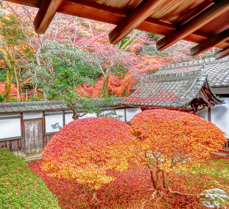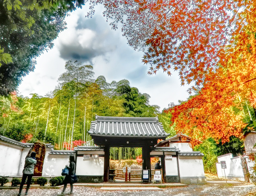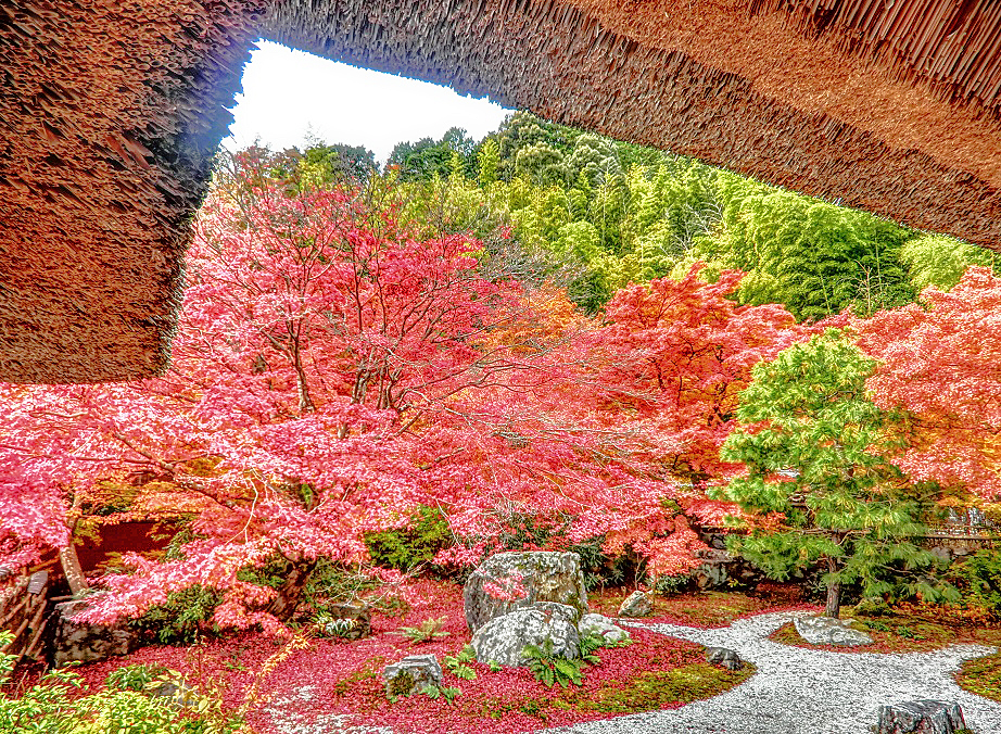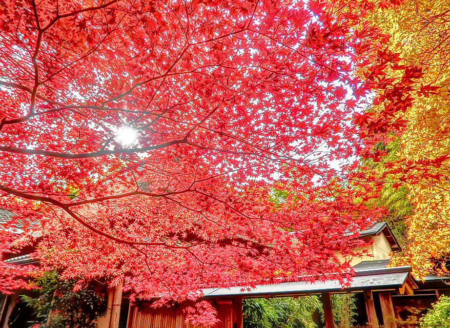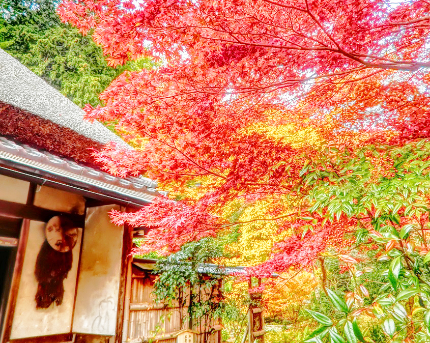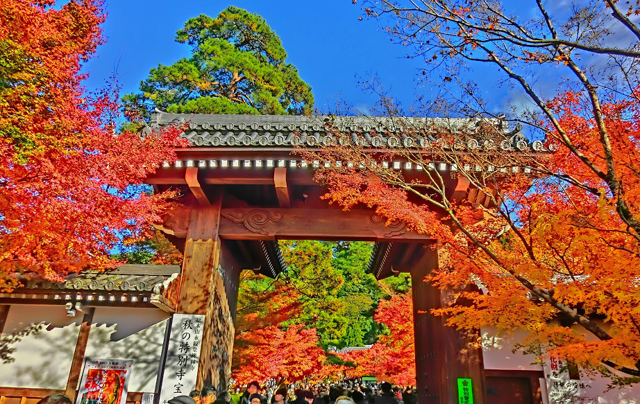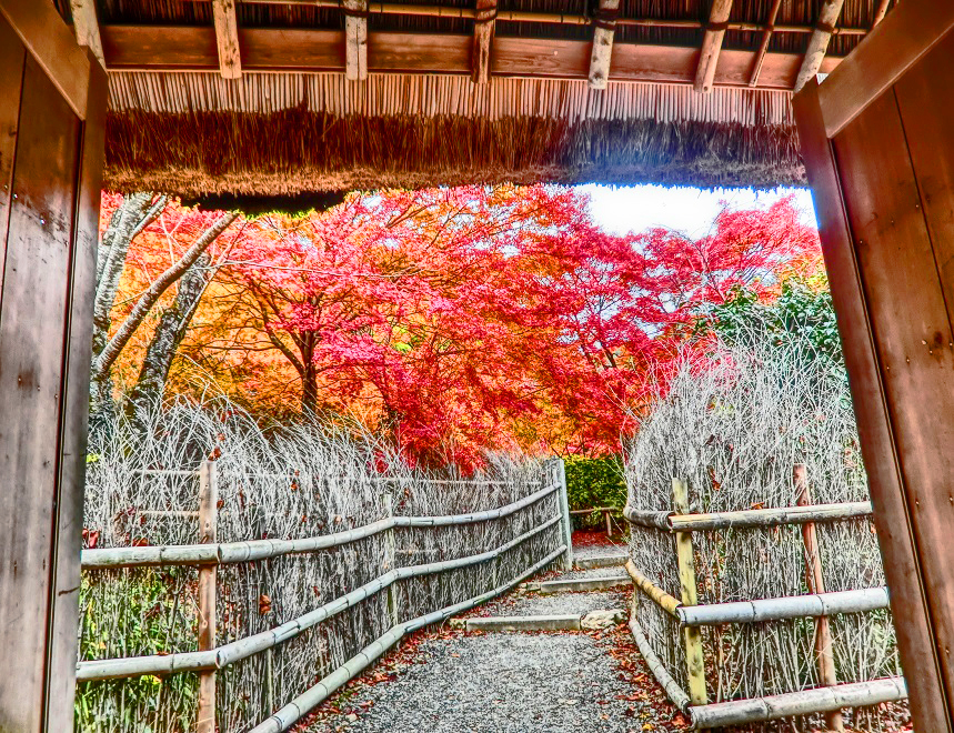 まるで、山門を額縁(がくぶち)にした絵画のような、美しい紅葉!!