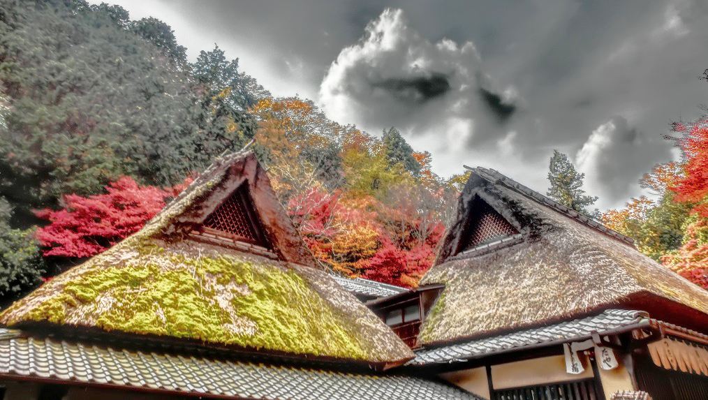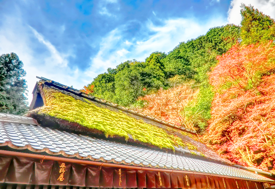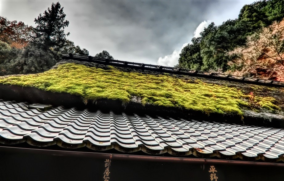 屋根を覆う、緑の苔(こけ)でさえも、この風雅さ・・・(笑)