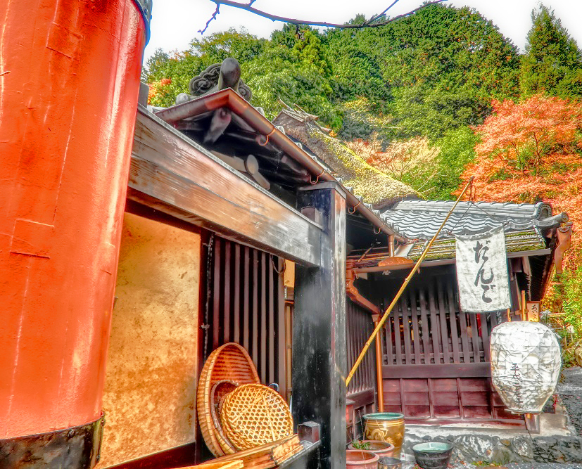茶屋の前に干してある、「手ぬぐい」たちでさえも、この風雅さ!(笑)