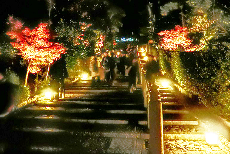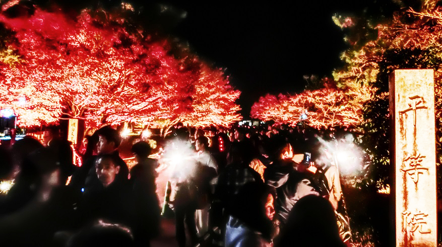 宇治駅を出た我々は、今年からライトアップを始めたばかりの、