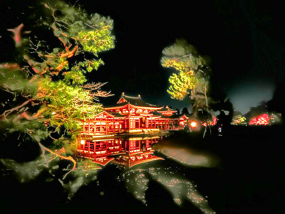 池に映る鳳凰堂と、光の反射を、印象派の絵画のような手法で、