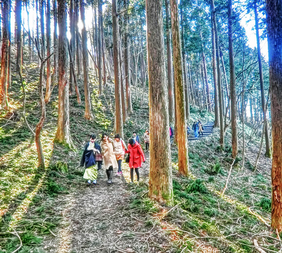 かなり急な山道に、参加者の皆さんの表情が、凍りつきます・・・(涙)