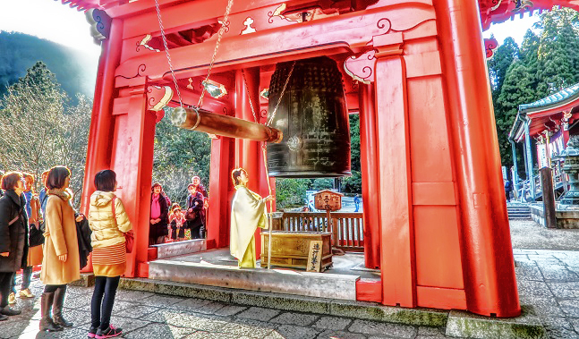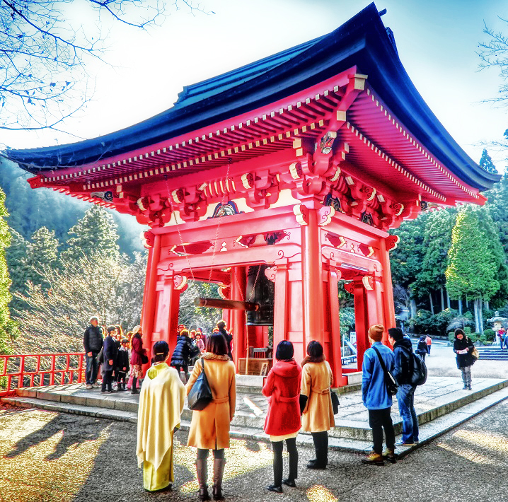到着&参拝記念に、みんなで、鐘も撞(つ)きましたよ。