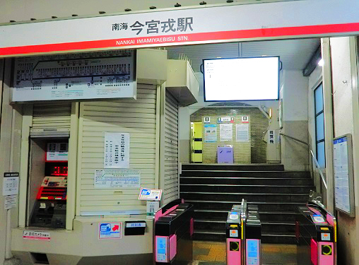 神社の真横にある、南海電車の「今宮戎」駅に向かい、