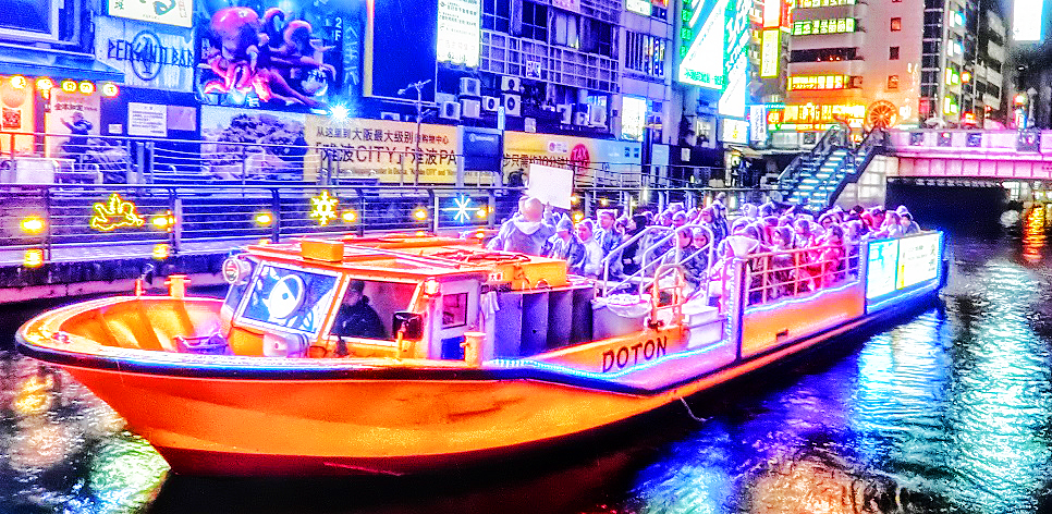 「道頓堀リバークルーズ」の船は、雨天でも運航中(涙)。