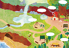 1.この絵本には、ふみクマ先生を含んで、何種類の生き物が、描かれていますか?(ただし、「親子」は1種類として計算します)