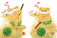 4.スイカ割りのときに、驚いて逃げている生き物は、何でしょうか?