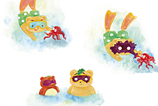 4.全ての絵の中に、帽子をかぶっている生きものは、何回、登場しますか?