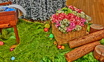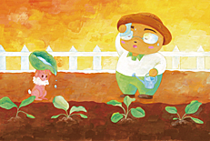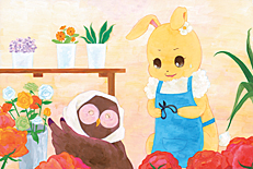 うさぎさんが、はなやさんの おてつだいをしながら、てに もっている