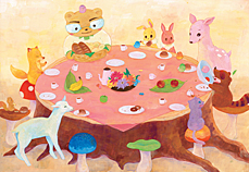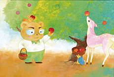 1.すべての絵の中に、シカの子どもが出てくる絵は、何枚ありますか?