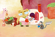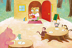 5.すべての絵の中に、エプロンをしている動物が出てくる絵は、何枚ありますか?