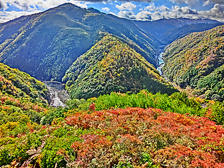 「嵐山高雄パークウェイ」に登り、保津川(ほづがわ)の渓谷を見下ろしました。