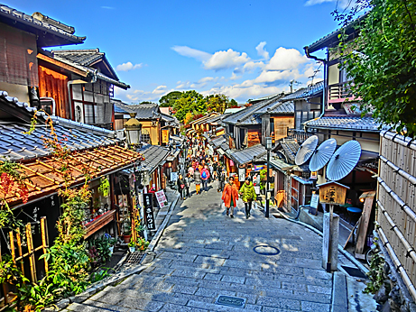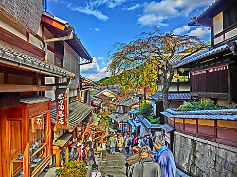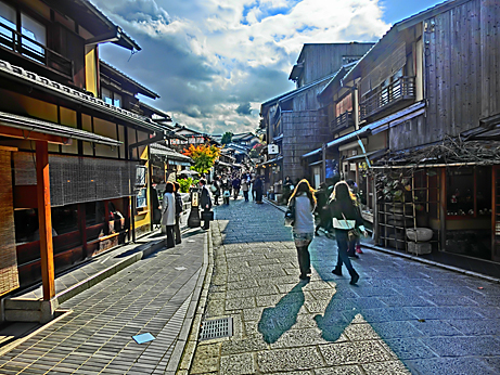 まずは、清水道から三年坂に折れ、土産物屋が並ぶ石畳を下っていきます。