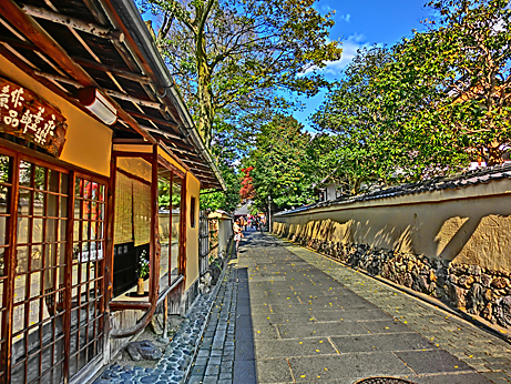 超高級な朝粥(あさがゆ)で知られる名店、「瓢亭」(ひょうてい)の前を通り過ぎ、