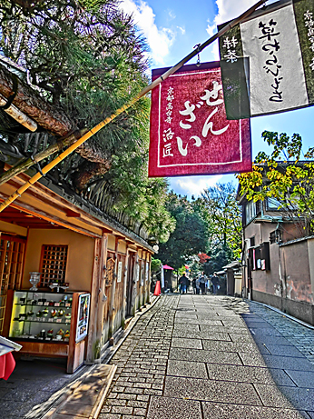 秀吉の妻「ねね」の遺体が眠る、高台寺(こうだいじ)の参道に目をやると、