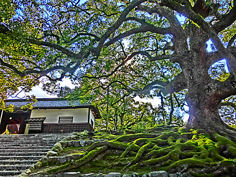 巨木の迫力に圧倒されながら、坂道を下っていくと、そこは岡崎・・・