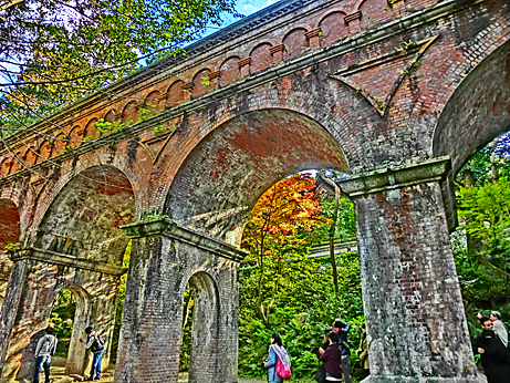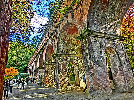 南禅寺の境内には、明治時代の建築になる「水路閣」(すいろかく)がそびえ立ち、
