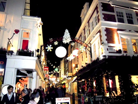 カーナビー・ストリートあたりを散策すると、クリスマスのイルミネーションが・・・