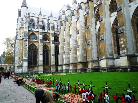 世界遺産「ウエストミンスター寺院」でバスを降りて、付近を散策。